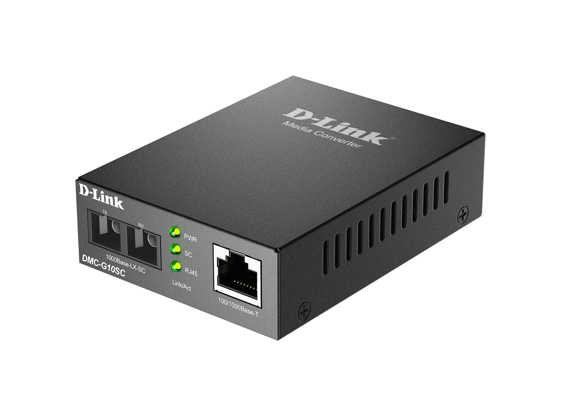 The DMC-G10SC is a media converter designed to convert a twisted-pair 100/1000Base-T Gigabit Ethernet connection to a single-mode fibre 1000Base-LX Gigabit Ethernet connection to extend a connection distance (up to 10 km) between two devices. This media converter is equipped with one RJ-45 for twisted-pair and one fibre optic SC port.