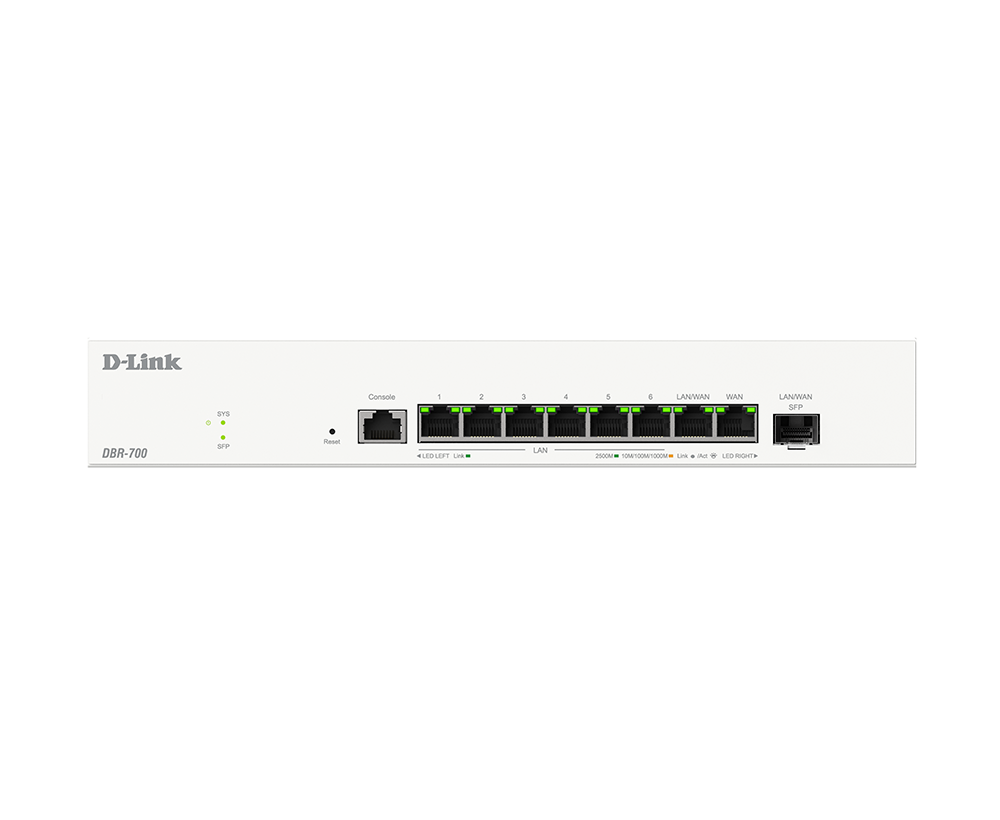 Le DBR-700 est doté d’une interface 2,5 G, offrant une bande passante plus élevée pour prendre en charge des transferts de fichiers plus rapides et un streaming vidéo 4K/8K sans décalage et de haute qualité, améliorant ainsi la productivité quotidienne grâce à une connectivité plus stable et fiable. Le port SFP (Small Form-Factor Pluggable) permet la transmission de données sur de longues distances, offrant une plus grande flexibilité et évolutivité dans la conception du réseau. Avec le port fibre, les entreprises peuvent facilement étendre leur réseau sans limitations de zone.