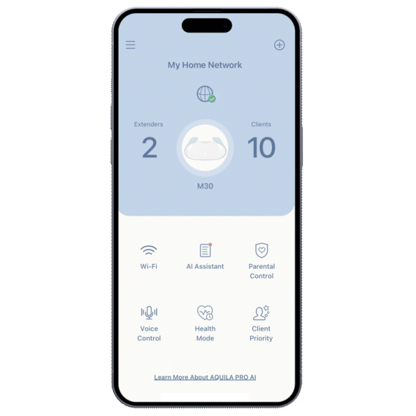 Basta scaricare l'app AQUILA PRO AI, collegare il router al modem e alla fonte di alimentazione, seguire le istruzioni sullo schermo dell'app e godersi il meglio dal proprio Wi-Fi di casa.