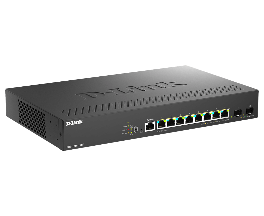 Gli switch della serie DMS-1250 sono versatili, adatti per ambienti SOHO, SMB e MDU. Forniscono una trasmissione dati ad alta velocità con 2.5 GE e un uplink di velocità 10G fondamentale per la connettività esterna. Questo uplink ad alta velocità garantisce che l'intera MDU possa accedere a servizi esterni senza incontrare colli di bottiglia dei dati. Inoltre, questi switch implementano efficacemente IEEE 802.3at o IEEE 802.3bt in DMS-1250-10SP, 10SPL e 12TP per consentire ai dispositivi di connettersi e ricevere alimentazione.