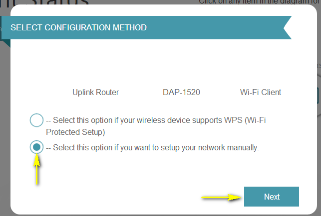 Step 7: To set up your network manually, select the second option from the setup wizard menu. Click Next to continue
