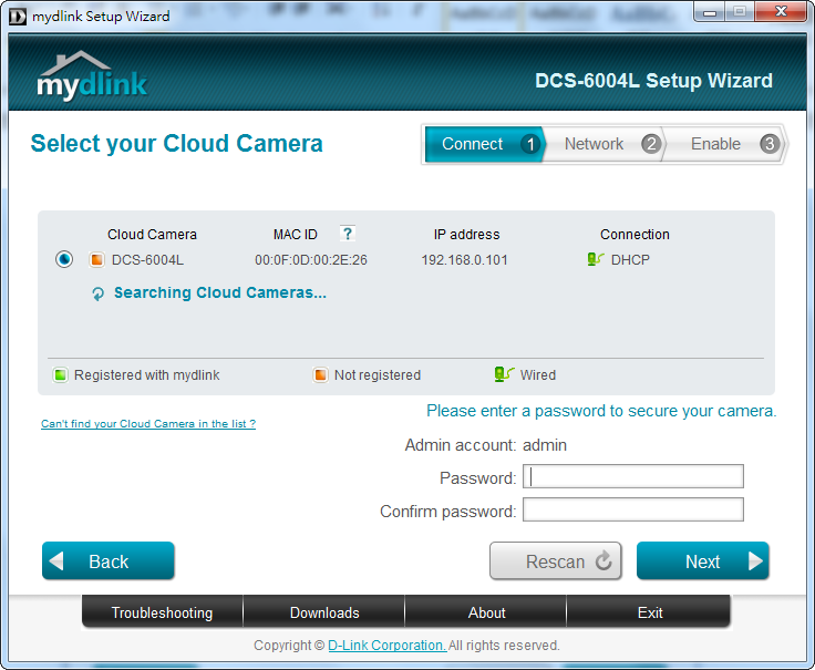 - Step 5.1: In order to use the cloud features of your camera, you will need to register it with your mydlink account. If you do not have a mydlink account, you can create one during this step.
