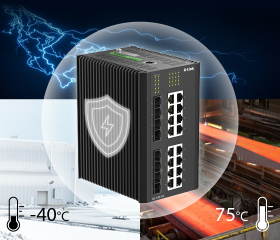 Le DIS-310G-24X bénéficie d’une conception robuste adaptée aux environnements difficiles tels que les installations extérieures, les usines non climatisées et les sites distants. Sa plage de température de fonctionnement étendue de -40°C à 75°C garantit des performances stables même dans des conditions extrêmes.