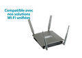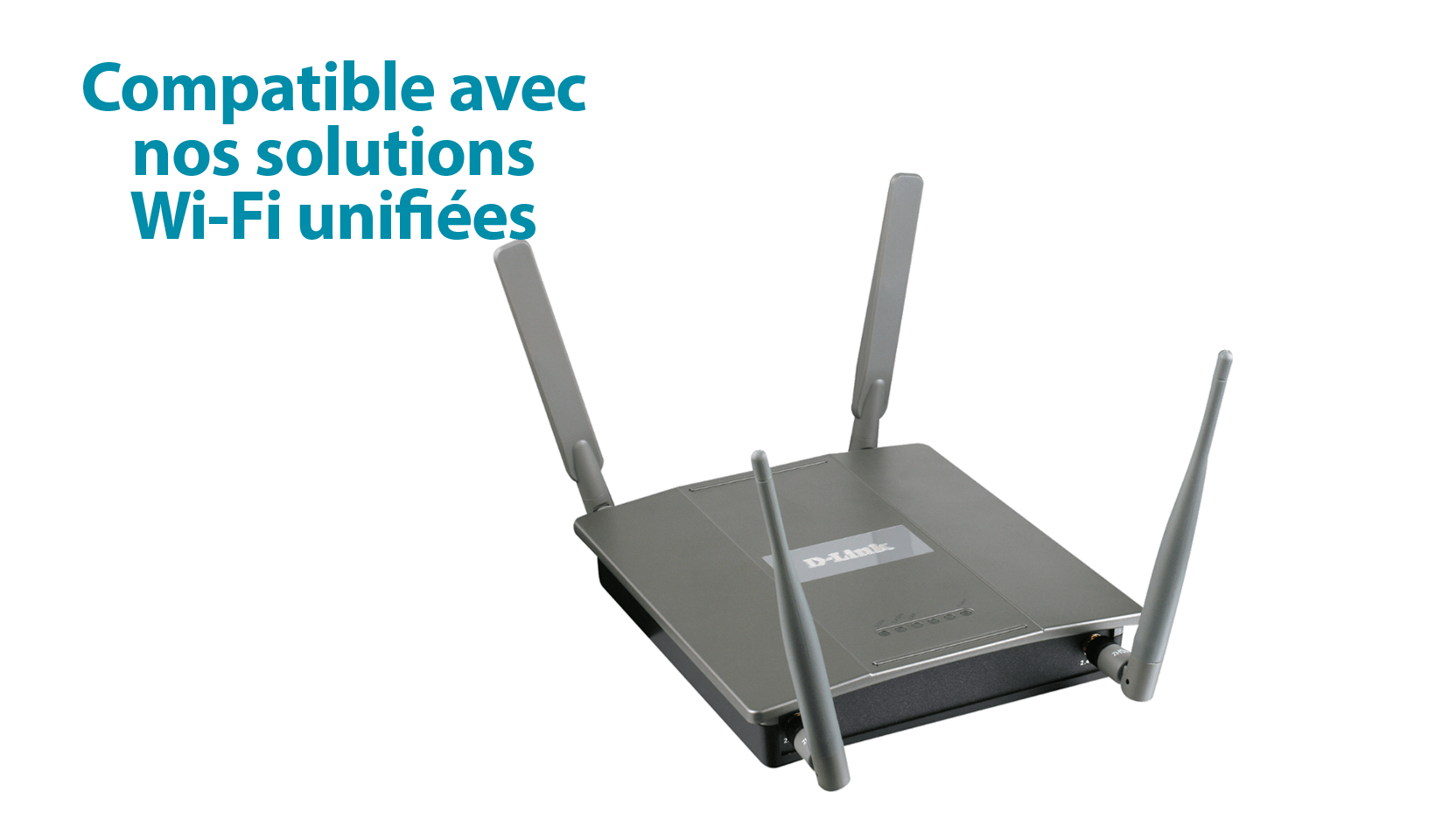 Le DWL-8600AP offre des performances sans fil simultanées et des vitesses maximales du signal simultanément dans les deux bandes de fréquence. Ses antennes externes permettent aux administrateurs réseau de régler la direction du signal sans fil pour optimiser la couverture.