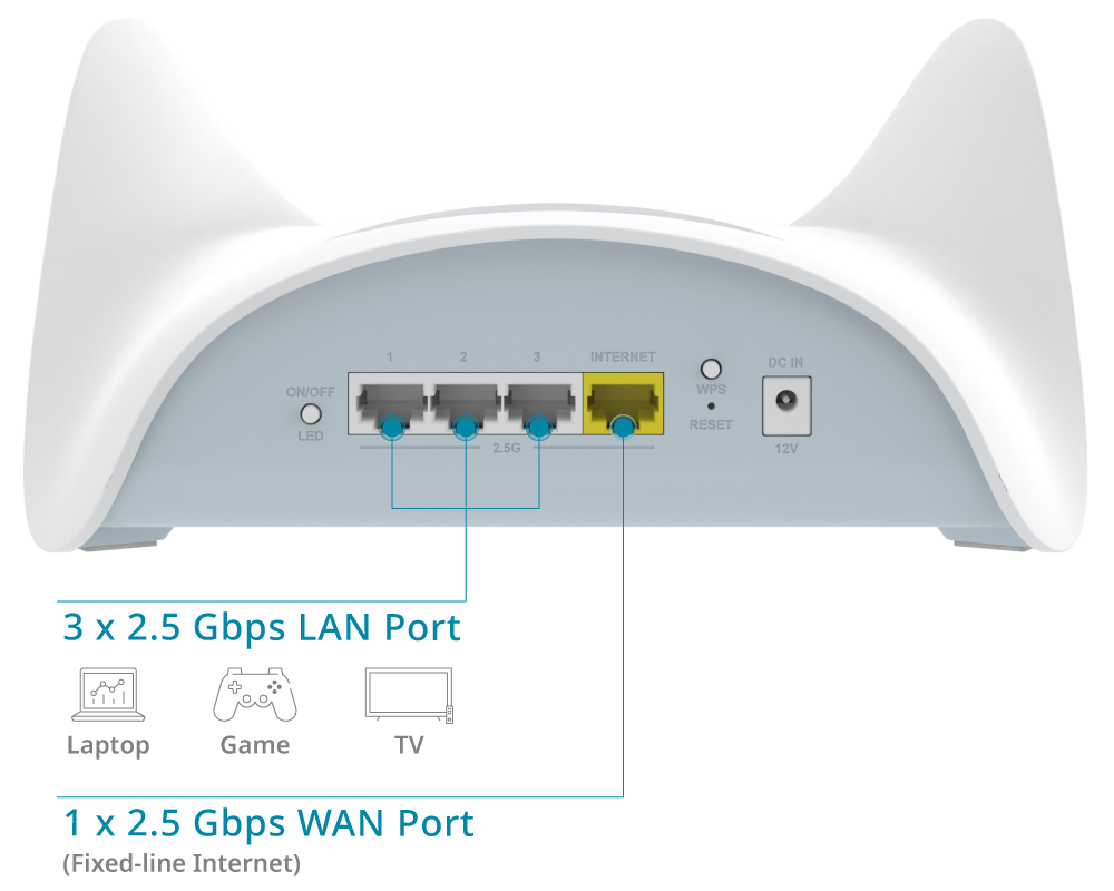 - Connectivité Gigabit Un port WAN 2,5 Gigabits et 3 ports LAN 2,5 Gigabits