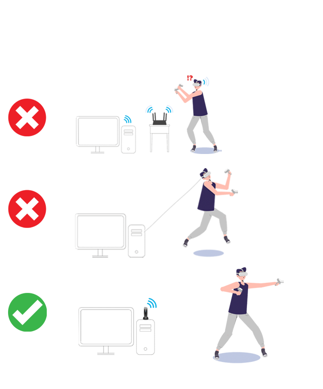 De Air Bridge creëert een directe en dedicated wireless link met je Meta Quest headset, zodat je kunt genieten van draadloze VR die sneller, soepeler en nog meeslepender is