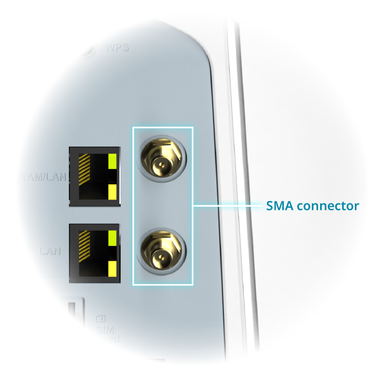 Sluit externe antennes aan via dubbele SMA-connectoren voor krachtigere en betrouwbaardere 5G/4G-prestaties binnenshuis of op afgelegen locaties.