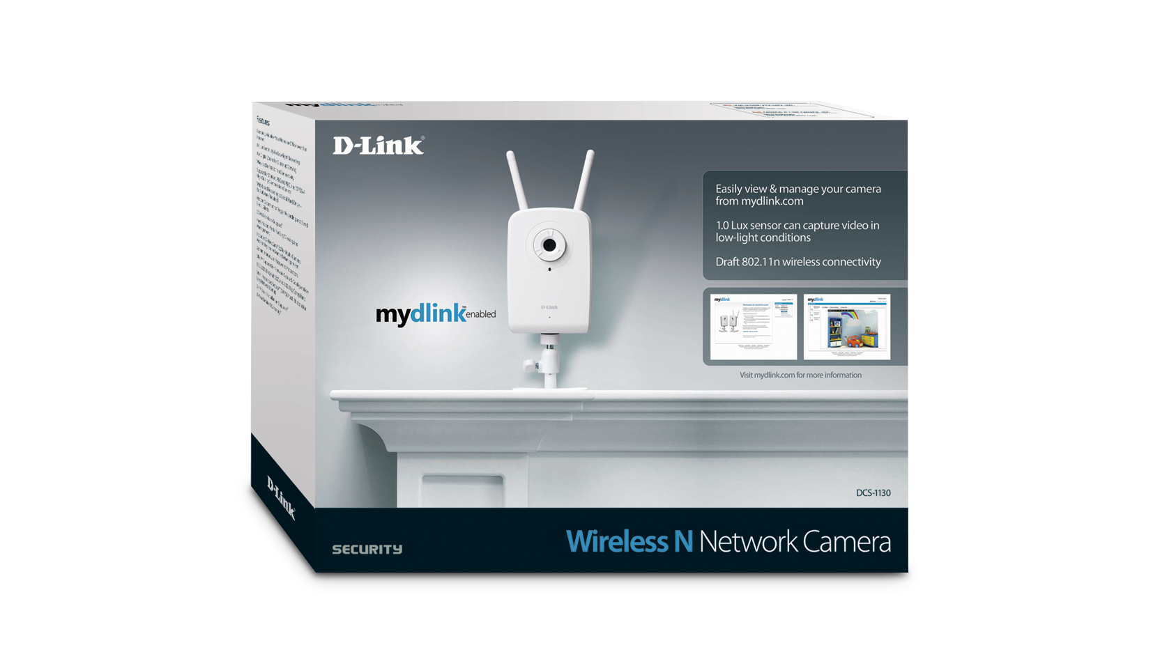 The mydlink™-enabled Wireless N Network Camera (DCS-1130) comes with everything you need to quickly add a surveillance camera to your home or small office network. It works right out of the box. Simply connect the cables, plug in the camera, run the short installation wizard and setup is complete. To view what the camera is seeing, simply log on to mydlink.com, choose your device, and start viewing – there is no need to configure your router1 to open up ports or remember hard-to-memorize Internet addresses.