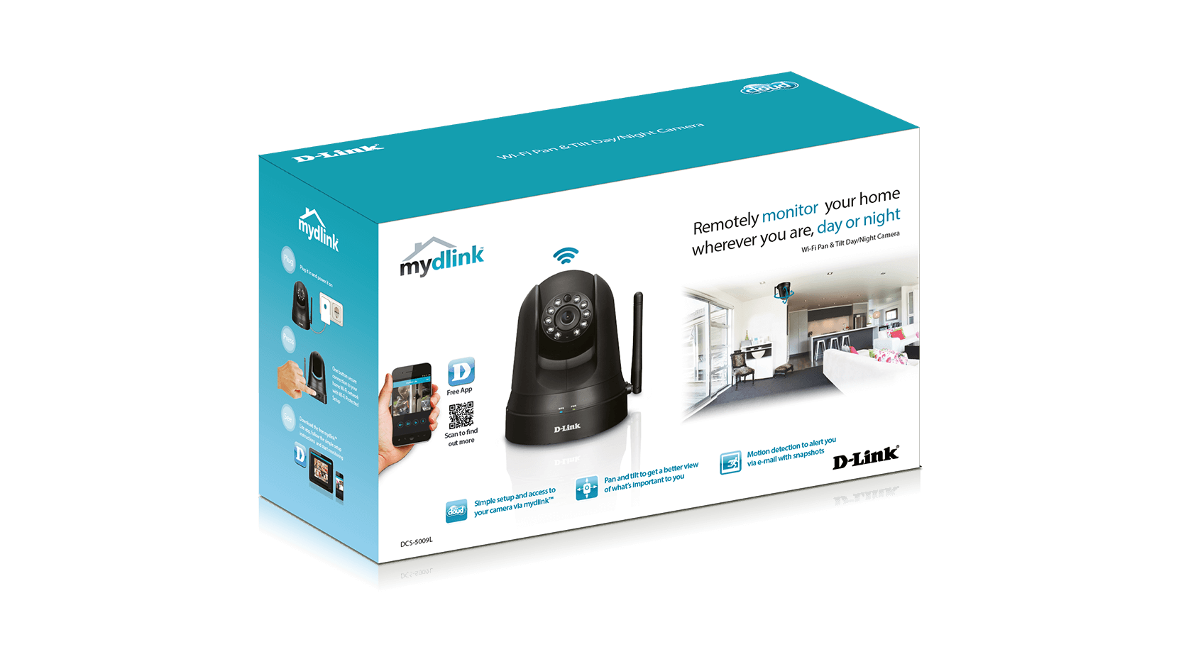 The DCS-5009L Wi-Fi Pan & Tilt Day/Night Camera provides a range of features to help you effectively monitor large areas of your home or small office at all hours of the day. The pan/tilt function allows the camera to patrol a wide area, while the built-in IR LEDs provide around the clock surveillance regardless of the lighting conditions.