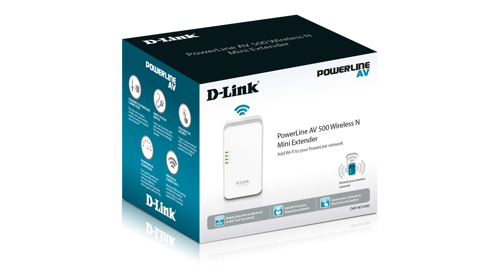 Усилвател D-Link DHP-W310AV улеснява създаването на високоскоростна мрежа. Просто поставете един адаптер в съществуващия си рутер за да включите всеки електрически контакт във вашия дом в интернет връзка и след това включете другия адаптер в стаята до която искате да разширите връзката си.