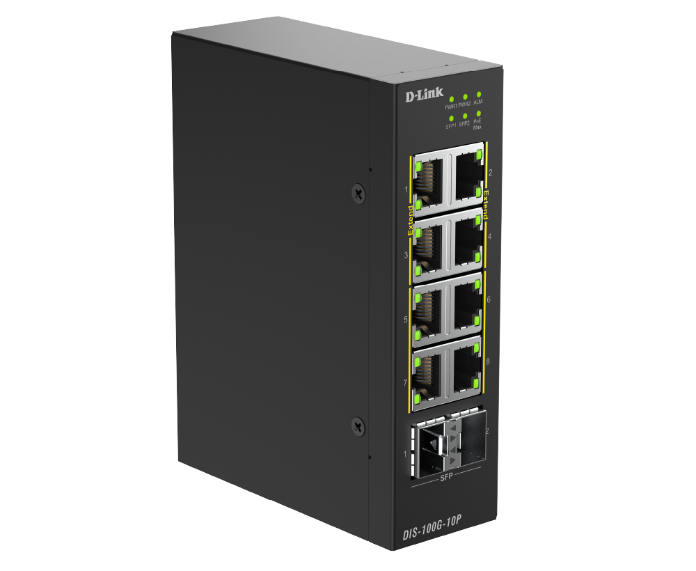 The DIS-100G-06P features two SFP ports that enable flexible, long-distance fiber connections, perfect for extending your network across remote sites or between buildings. Fiber optic cabling goes beyond the distance limitations of traditional Ethernet, offering high bandwidth and strong resistance to interference. This ensures stable, high-performance transmission in industrial environments where reliability is essential.
