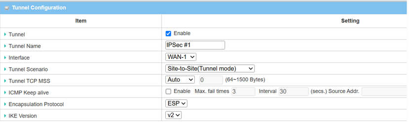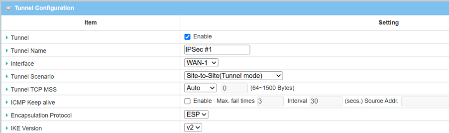 | Tunnel Scenario | Select Site-to-Site (Tunnel Mode) from the drop-down menu |