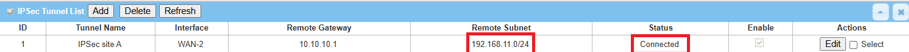 - IPsec Tunnel List: This section is for IPsec Site-to-Site.