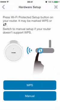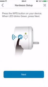 | Press the "WPS" button until the green light flashes and tap "Next" |