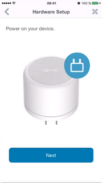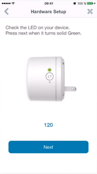 | Once the LED is solid green do "Next" | The application will search the device on the network |