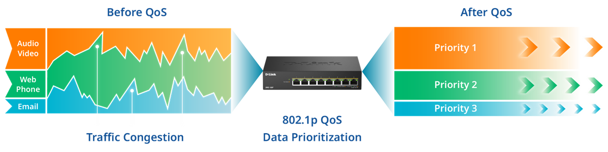 - Quality of Service (QoS) zajišťuje nepřetržité připojení