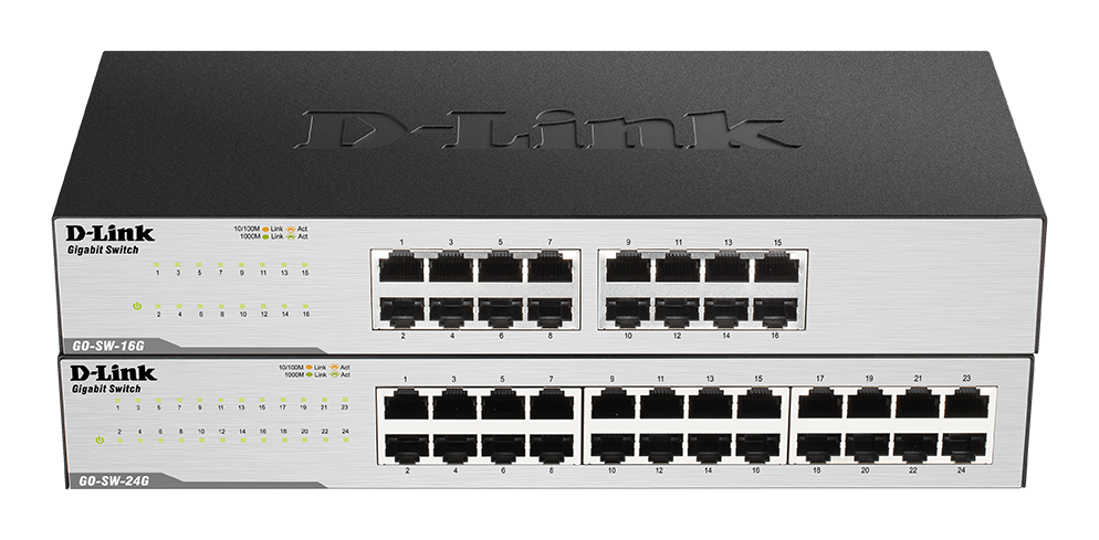 Neřiditelné gigabitové switche dlinkgo GO-SW-16G s 16 porty a GO-SW-24G s 24 porty nabízejí ekonomicky výhodné a energeticky úsporné řešení pro malé/domácí kanceláře (SOHO) a malé/střední firmy (SMB), které chtějí využívat výhod větší šířky pásma Gigabit Ethernetu.