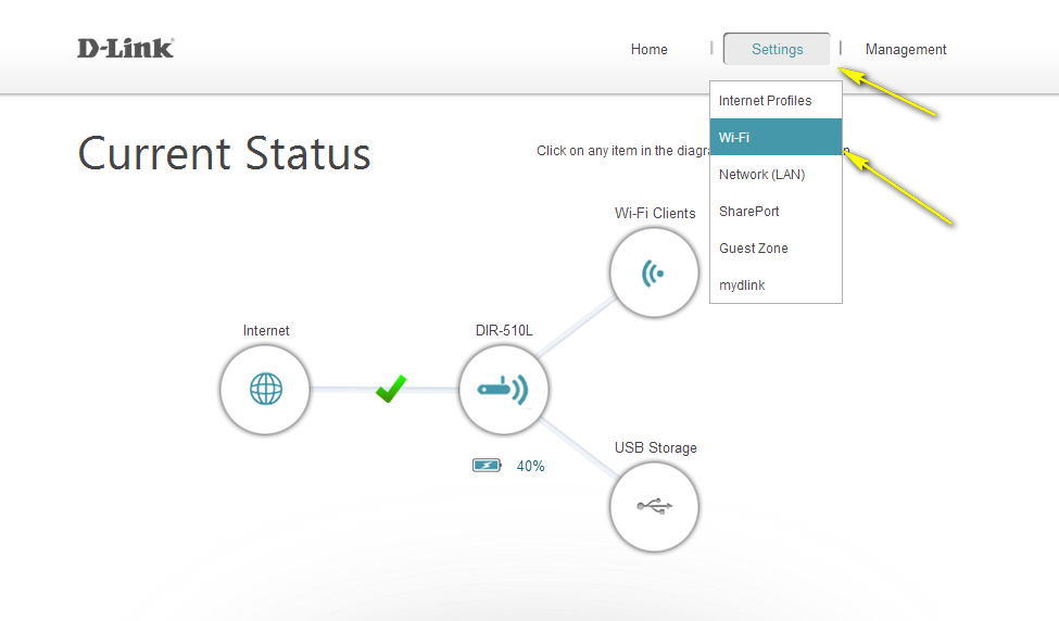 Step 3: Move the cursor to the Settings tab and then click Wi-Fi.