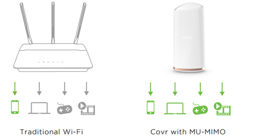 Erleben Sie volle Signalstärke überall in Ihrem Zuhause. Durch die integrierte Smart-Steering-Technik von Covr wird automatisch der schnellste und am wenigsten belastete Frequenzbereich für Sie bereitgestellt. So laden Sie jede Website im Handumdrehen. Covr bietet außerdem MU-MIMO: eine Technik, die effizient den Traffic mehrerer Geräte steuert und damit für eine noch höhere WLAN-Geschwindigkeit sorgt.