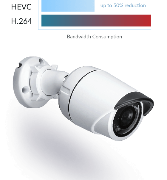 Unterstützung des High Efficiency Video Coding (HEVC) Standards zur Optimierung der Netzwerkbandbreite für eine bessere Bildqualität und Aufnahmeleistung.