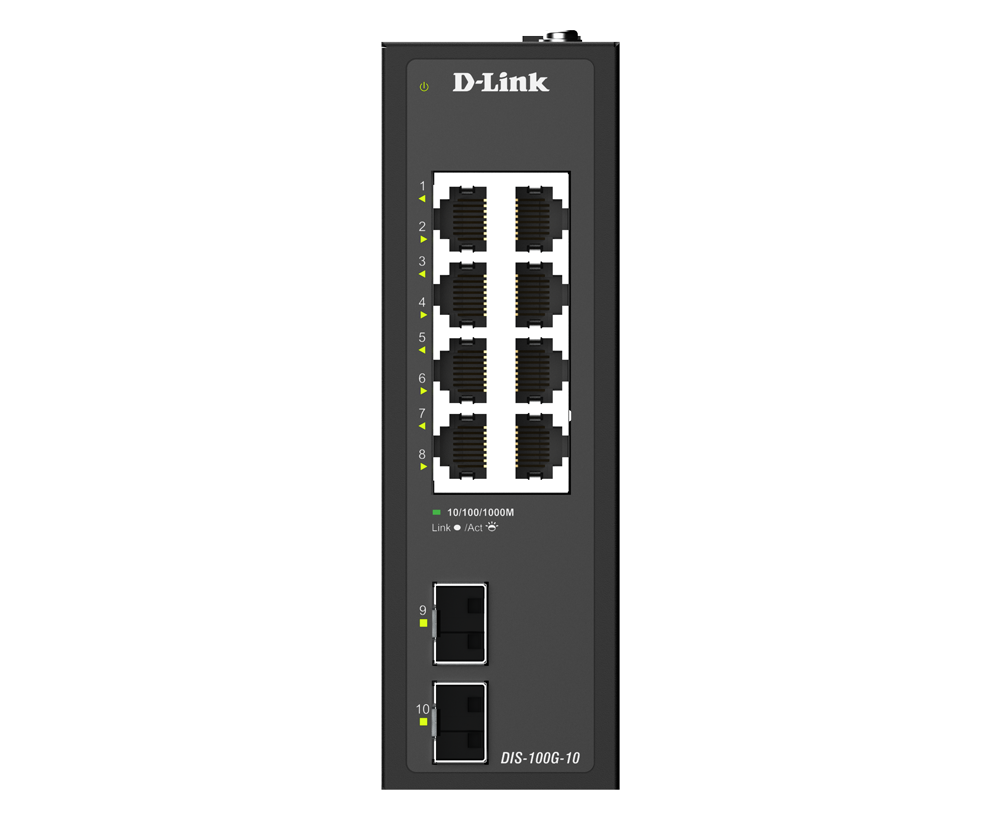 Der DIS-100G-10 ist ein unmanaged Switch mit acht 1G-Ports und zwei SFP-Ports, für die Industrie, der eine einfache Plug-and-Play-Bereitstellung ermöglicht. Die SFP-Ports unterstützen die Datenübertragung über große Entfernungen und beseitigen damit die Entfernungsbeschränkungen herkömmlicher Ethernet-Verkabelungen. Mit seinem zuverlässigen, leistungsstarken Betrieb gewährleistet er die Datenübertragung in Echtzeit und eine nahtlose Konnektivität für Anwendungen wie Kiosk, Digital Signage, LED-Displays und mehr.