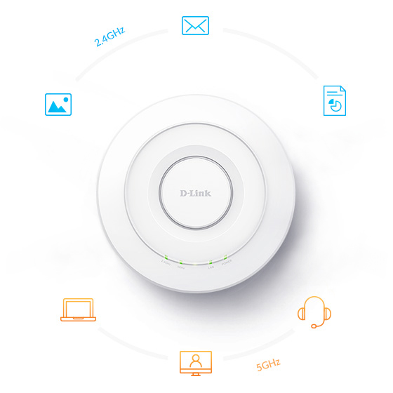 Die 4x4-MU-MIMO-Technik des DWL-8620AP schöpft alle Datenströme voll aus und verbindet so mehr Clients bei stark verbesserter WLAN-Leistung.