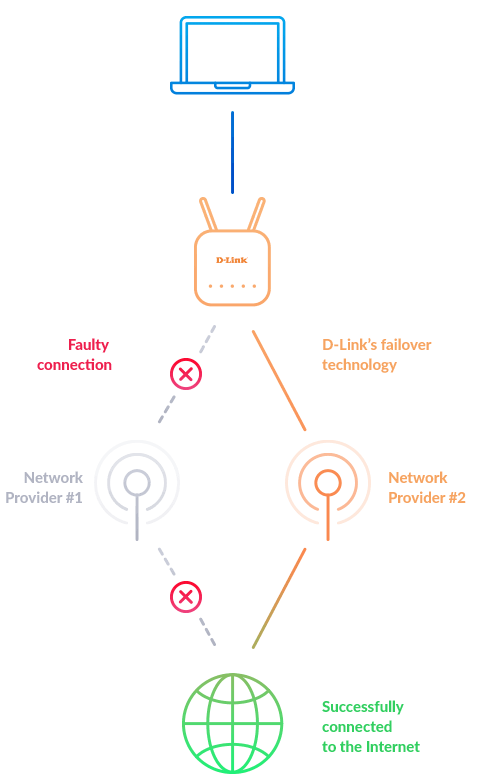Eine Internetverbindung kann immer einmal ausfallen, aber mit der D-Link Failover-Technik haben wir dafür eine zuverlässige Lösung entwickelt.