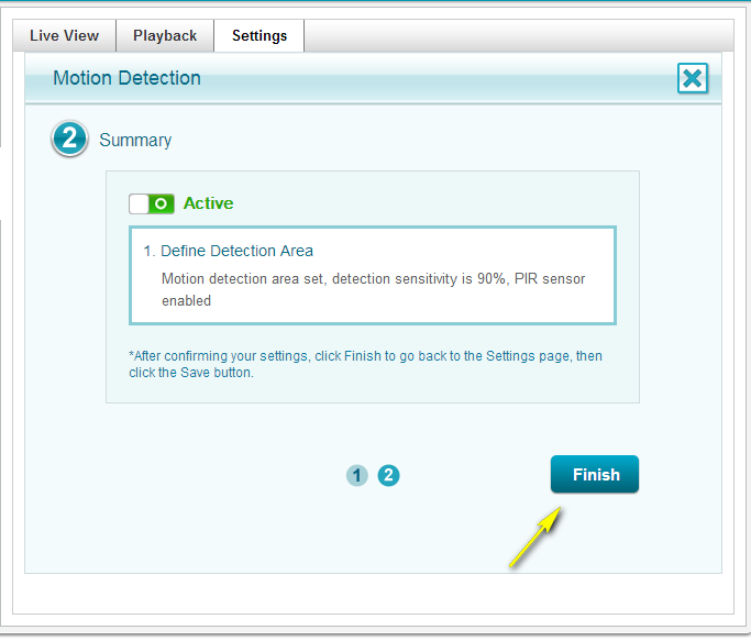 Step 5: Select the detection area and sensitivity you would like using the drawing tools. Click Next to continue.