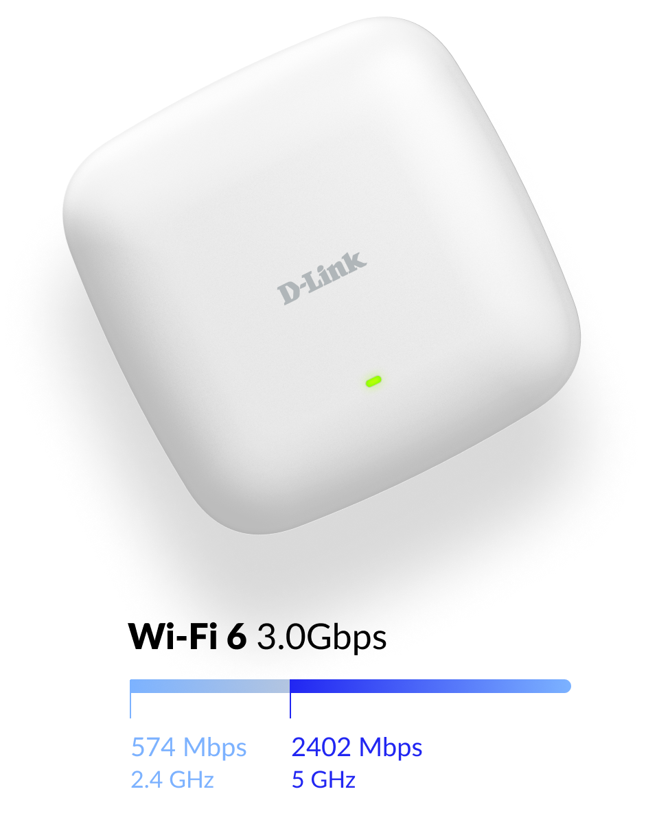 The Wi-Fi 6-enabled DAP-X3060 delivers incredible speeds, significantly increased capacity, and interference-free coverage for business environments of all sizes.