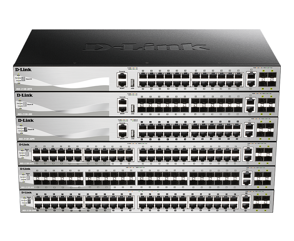 - DGS-3420-52T: 52-Port Gigabit L2+ Stackable Managed Switch including 4 x 10 Gbps SFP+ ports
