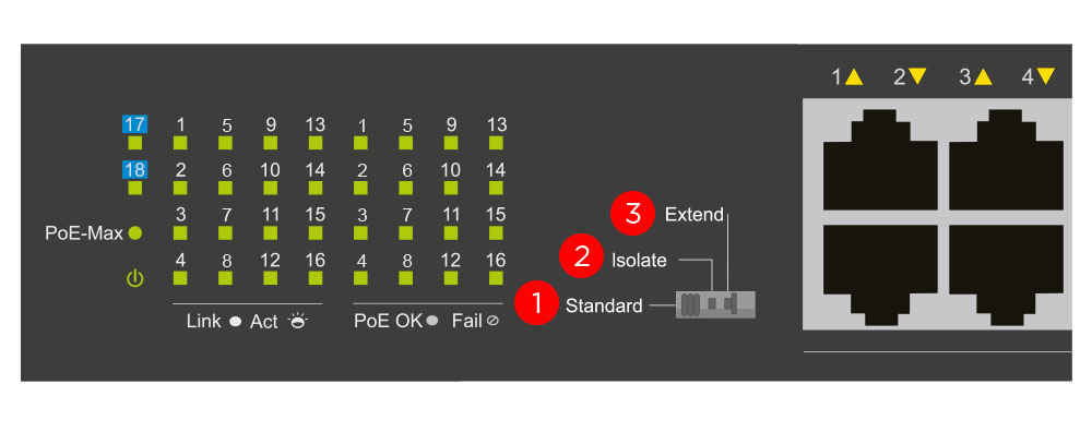 Have a device more than 100m away? Use this mode to keep supplying PoE over distances of 100m, doing away with the need for more equipment such as PoE extenders.