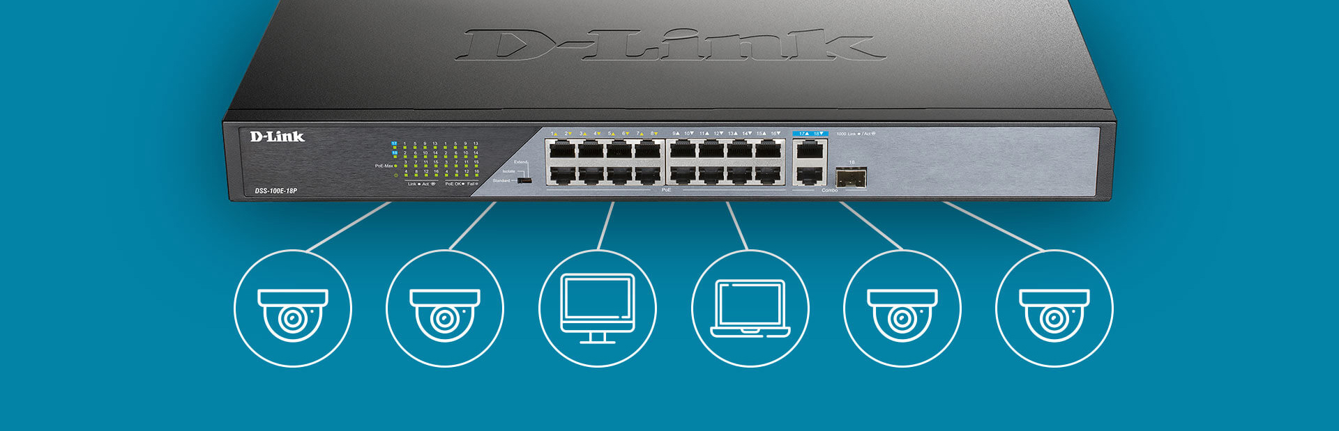 The DSS-100E-18P is not just for cameras, it’s ready to support other surveillance-related devices as well. Simply plug in the devices you need to complete your setup; the switch can then automatically detect what has been connected. It then adjusts accordingly to provide optimal performance. Ideal for a power surveillance with minimal management fuss.