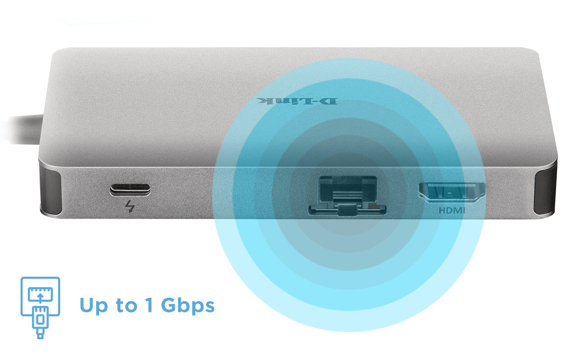 The DUB-M910 plugs into any available USB Type-C port on your computer to enable you to connect to an Ethernet network at speeds up to 1Gbps for up to ten times faster transfer speeds compared to previous standards. High-speed Gigabit Ethernet allows you to transfer large files in no time, or make light work of backups to a server or network storage device. Where wireless connectivity is inconsistent or unavailable, this adapter offers a seamless wired alternative.