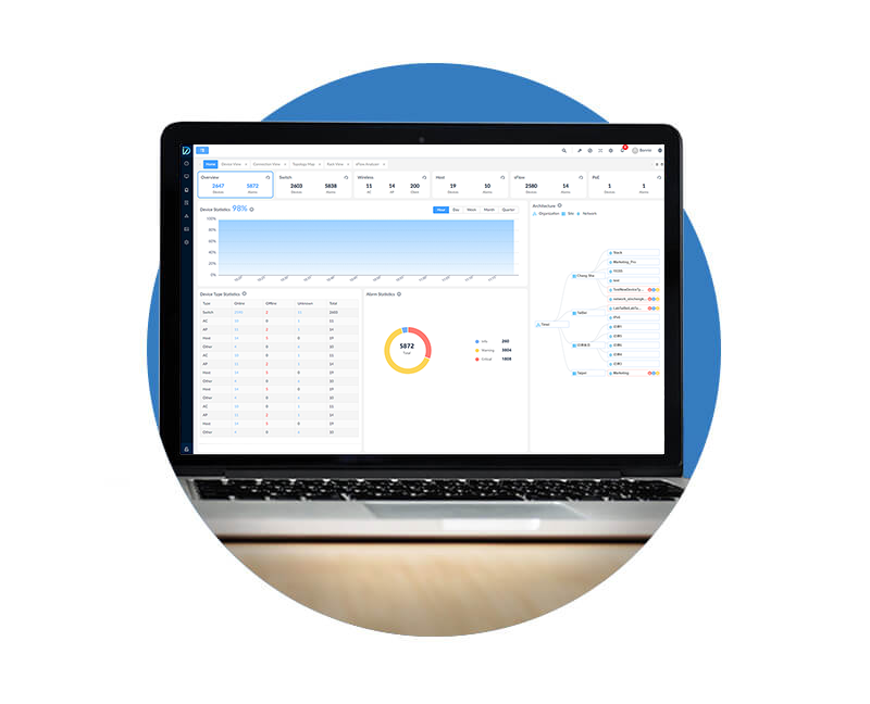 For more complex network infrastructures, D-View 8, a centralized management platform, can be installed for in-depth network management and maintenance to optimize network availability, reliability, security, and resilience.