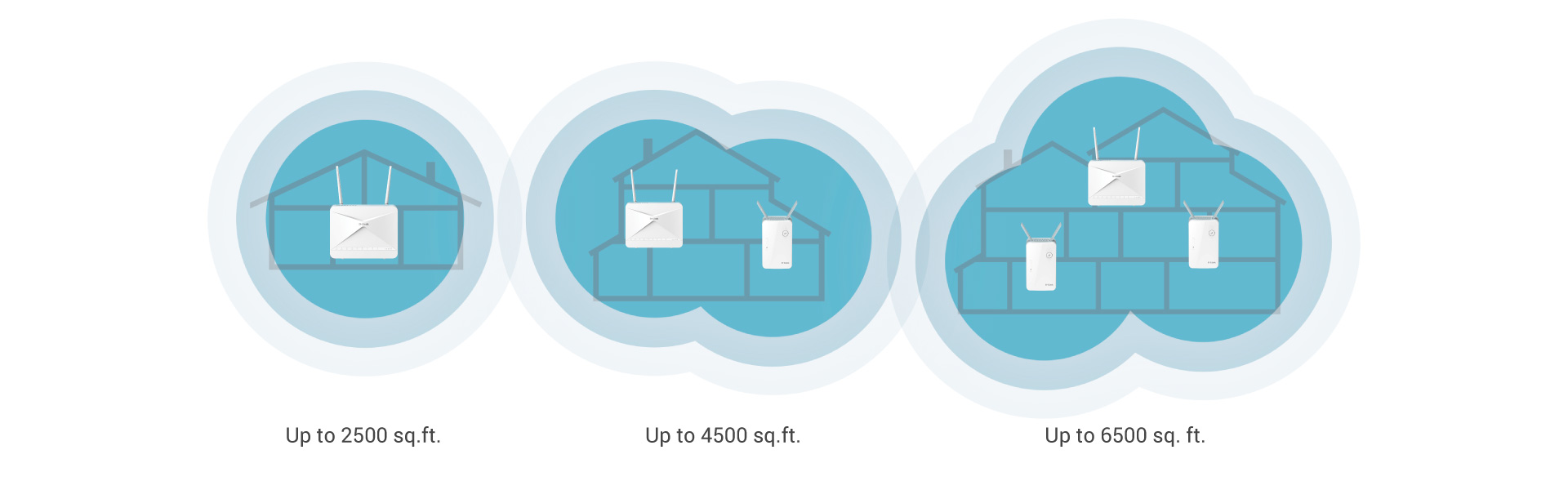 Simply add E15 Wi-Fi extenders to build a smart Mesh network, giving you high-speed Internet coverage throughout your home of any size.