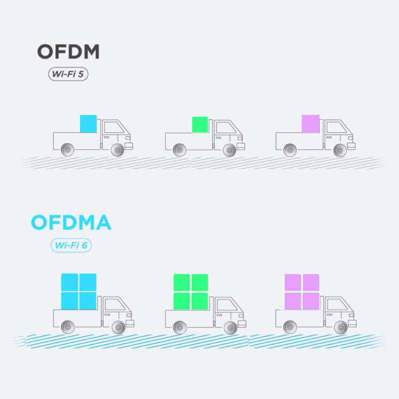 Wi-Fi 6 offers OFDMA technology to serve more device connections at once to significantly reduce network latency.