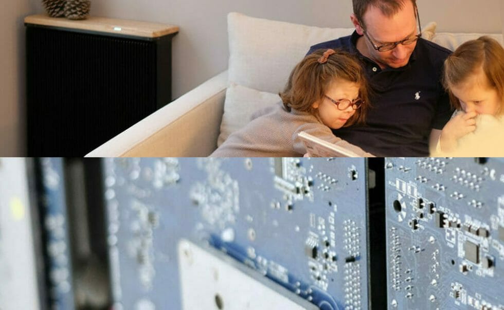The QH-1 computing heater features embedded microprocessors which emit heat while performing computer processing for third-party companies. Dealing with two types of clients, therefore, Qarnot provides distributed computer processing within buildings and recycles the resulting waste heat.
