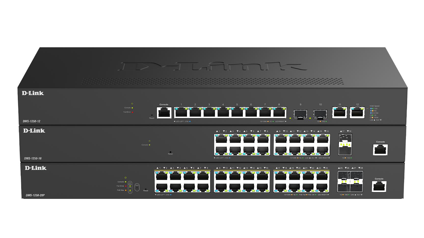 D-Link está adaptando su portfolio de conmutadores a 802.3bz para una progresiva transición tecnológica de Gigabit a la versatilidad de Multi-Gigabit; modelos de sobremesa sin gestión, gamas intermedias Smart y PoE, modelos nativos 10 Gigabit y gamas Managed Enterprise L3 con apilado físico.