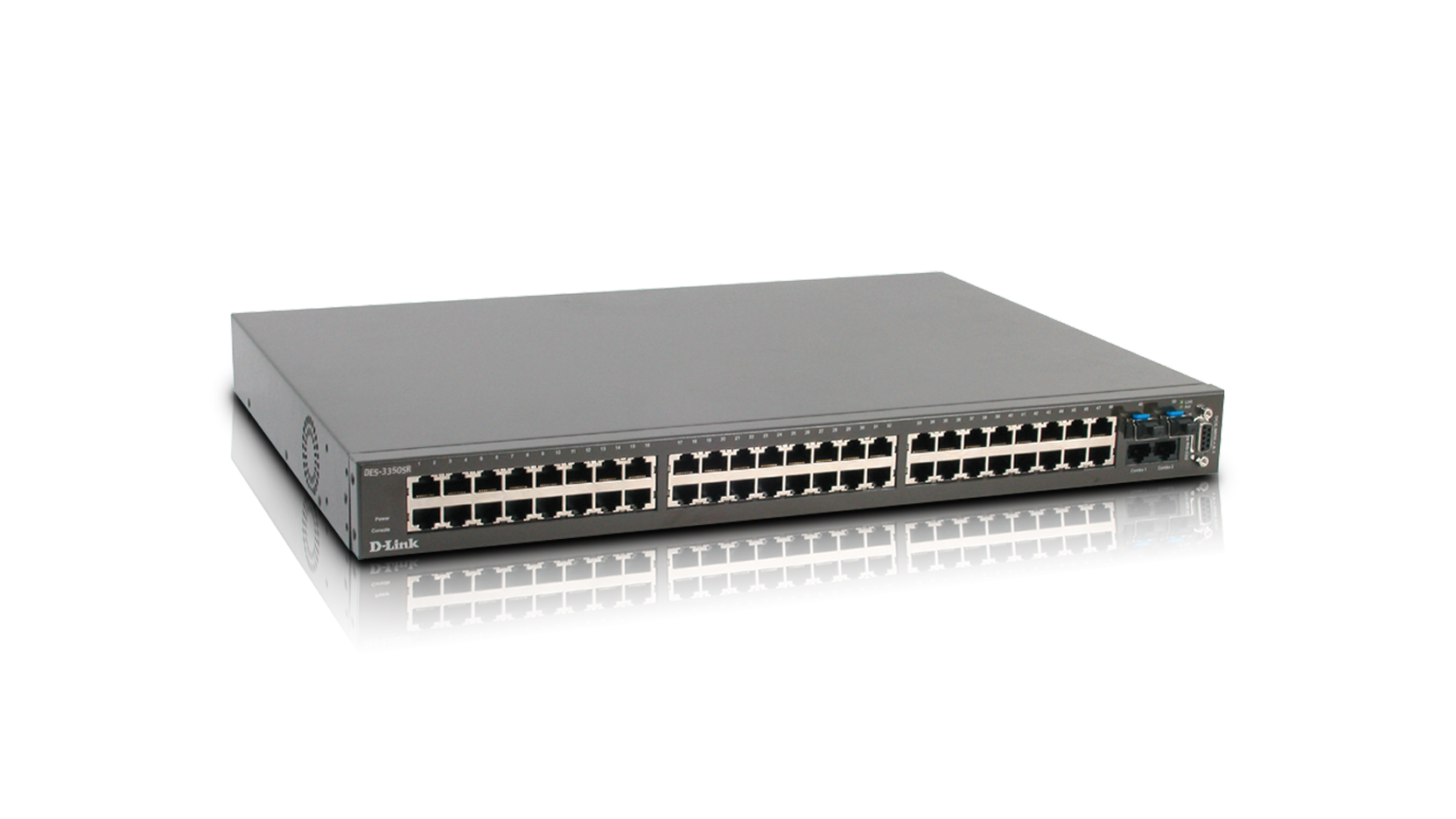El DES-3350SR de D-Link es un Switch gestionable de alto rendimiento, de nivel 3 y autosensing 10/100BASE-T que constituye una solución ideal para las aplicaciones empresariales de alta densidad. Con los 48 puertos Ethernet 10/100BASE-T y los 2 slots combo 10/100/1000BASE-T/SFPs (Mini-GBIC), el DES-3350SR se creó para satisfacer las necesidades de la mayoría de las más exigentes aplicaciones de conectividad empresariales y departamentales que requieren una solución de alta densidad y bajo perfil. El DES-3350SR admite una opción de alimentación redundante a través de un sistema RPSU externo (DPS-200), para una fiabilidad máxima de la red.