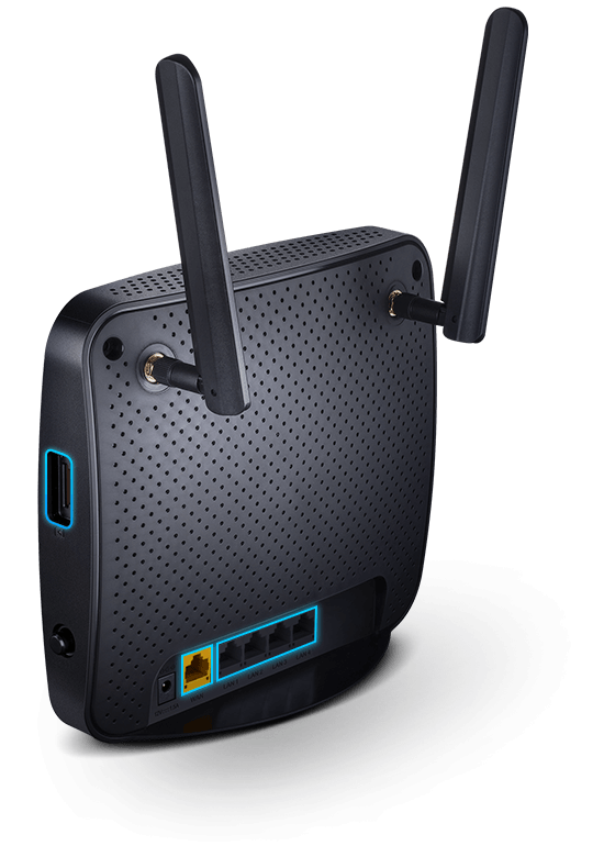 Comparta una banda ancha móvil 4G LTE con múltiples dispositivos como televisores inteligentes, consolas de videojuegos, teléfonos, tabletas y dispositivos inteligentes para el hogar con una potente señal Wi-Fi de hasta 1200 Mbps2 y 4 puertos Gigabit para conexiones por cable. Simplemente inserte su tarjeta SIM y comparta su red inalámbrica 4G LTE con sus dispositivos.