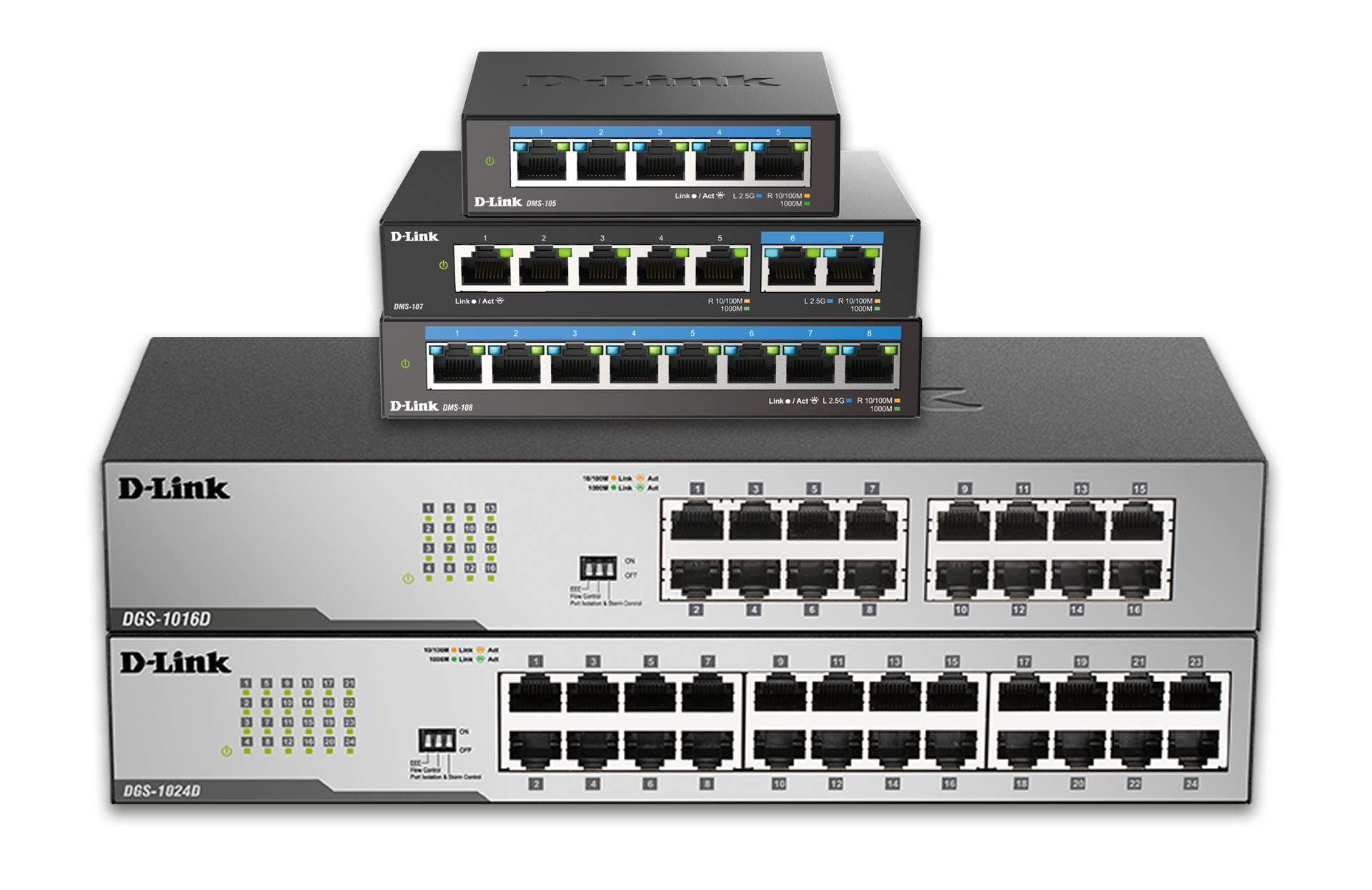 D-Link destaca por tener el portfolio de switches más versátil para adaptarse a cualquier entorno, con amplia variedad en densidad de puertos (Gigabit, Multigigabit, 10/40/100G) cobre o fibra, apilado físico y múltiples opciones Power Over Ethernet (PoE). Desde el nivel básico sin gestión, hasta soluciones totalmente gestionadas, con administración mediante CLI, webGUI o incluso unificada con Wireless en la plataforma D-Link Nuclias. D-Link ha sido líder en ventas en España en Switches Smart Managed y Smart Cloud, según la consultora especializada Context en 2022.