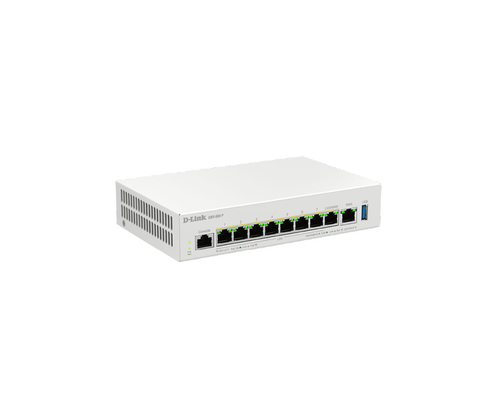 The DBR-600-P features a 2.5G interface, providing higher throughput to support faster file transmission and triple play service without congestion and latency, benefiting your business in real-time communication, enabling more stable and reliable connectivity. Its eight PoE-enabled ports up to 123W power budget make installation easily and costless by delivering both power and data through a single cable, making it perfect for devices like IP cameras and access points.