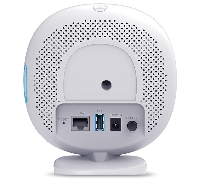 The hub also has a microSD card slot and USB port for connecting external hard drives and storing videos locally.