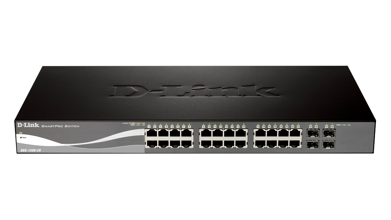 - DGS-1500-28: 28-Port Gigabit Smart Managed Switch including 4 SFP ports (fanless)