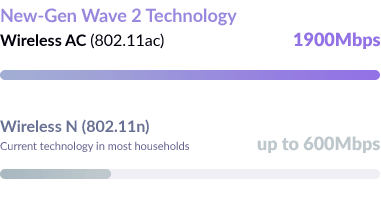 It uses concurrent dual-band Wireless AC Wave 2 technology with MU-MIMO, to efficiently deliver up to 1900Mbps1 on the best wireless band to all your devices simultaneously. Now you can enjoy streaming movies, playing online games, and browsing the web on any of your devices.