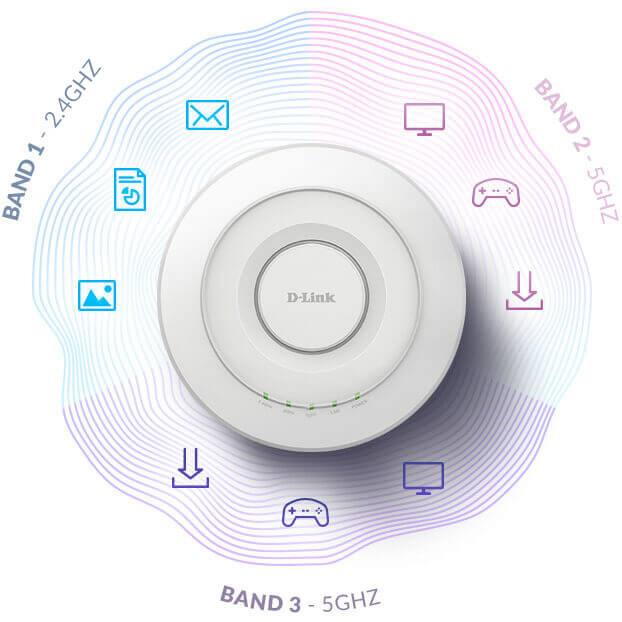 The DWL-7620AP features one 2.4 GHz and two 5 GHz wireless bands for the growing number of devices connecting to a single access point.