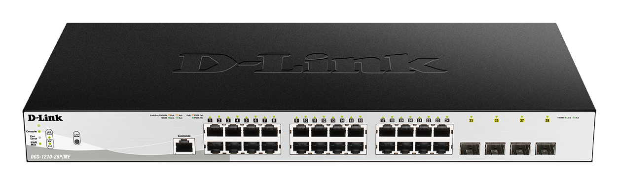 The DGS-1210/ME Series Gigabit Managed Switches provide a diverse range of Gigabit port densities to accommodate various enterprise and public sector connectivity needs. With optional PoE to conveniently power edge devices, SFP ports to extend network connectivity, and advanced Layer 2 functionalities, the DGS-1210/ME Series is ideal for any enterprise access layer or large multi-site deployment and allows businesses to build a more secure and efficient network with advanced network security features and QoS.