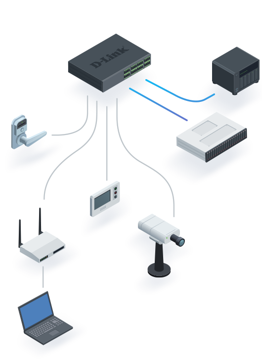 La série DGS-2000 comprend une large gamme de densités de ports et de types de supports, de 10 à 52 ports, y compris les ports Gigabit cuivre, fibre et mixtes. Tous les switches PoE de la série prennent en charge PoE+ et fournissent des budgets de puissance élevés allant jusqu’à 370 W, ce qui permet de connecter et d’alimenter davantage d’appareils PoE.