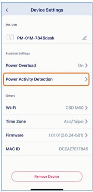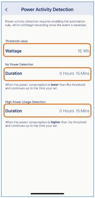 Étape 5 : Saisissez un Seuil de puissance sous « Valeur seuil ». Définissez ensuite la durée pour Détection de l’absence de tension et Détection d’une consommation élevée d’énergie.