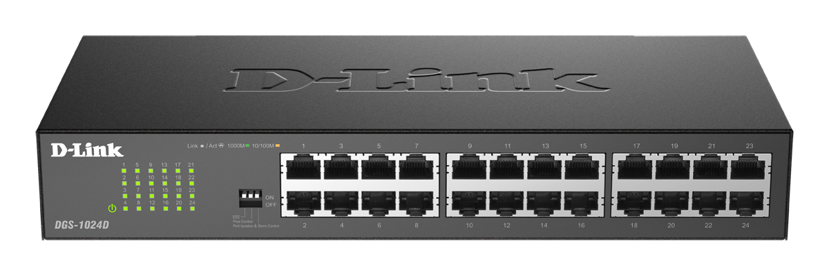 The D-Link DGS-1024D 24-Port Unmanaged Gigabit Switch series offer an economical way for SOHO and Small-to-Medium Businesses (SMB) to take advantage of Gigabit Ethernet speeds while reducing energy consumption and minimising noise output.